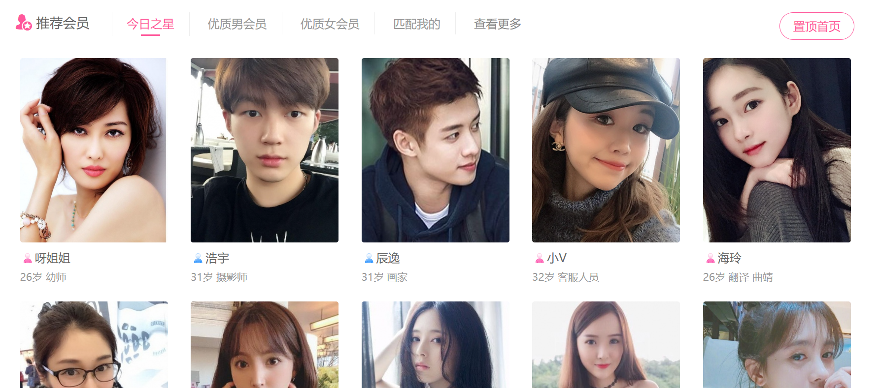 - 资料完善:性别、年龄、身高、学历、职业、收入、择偶要求