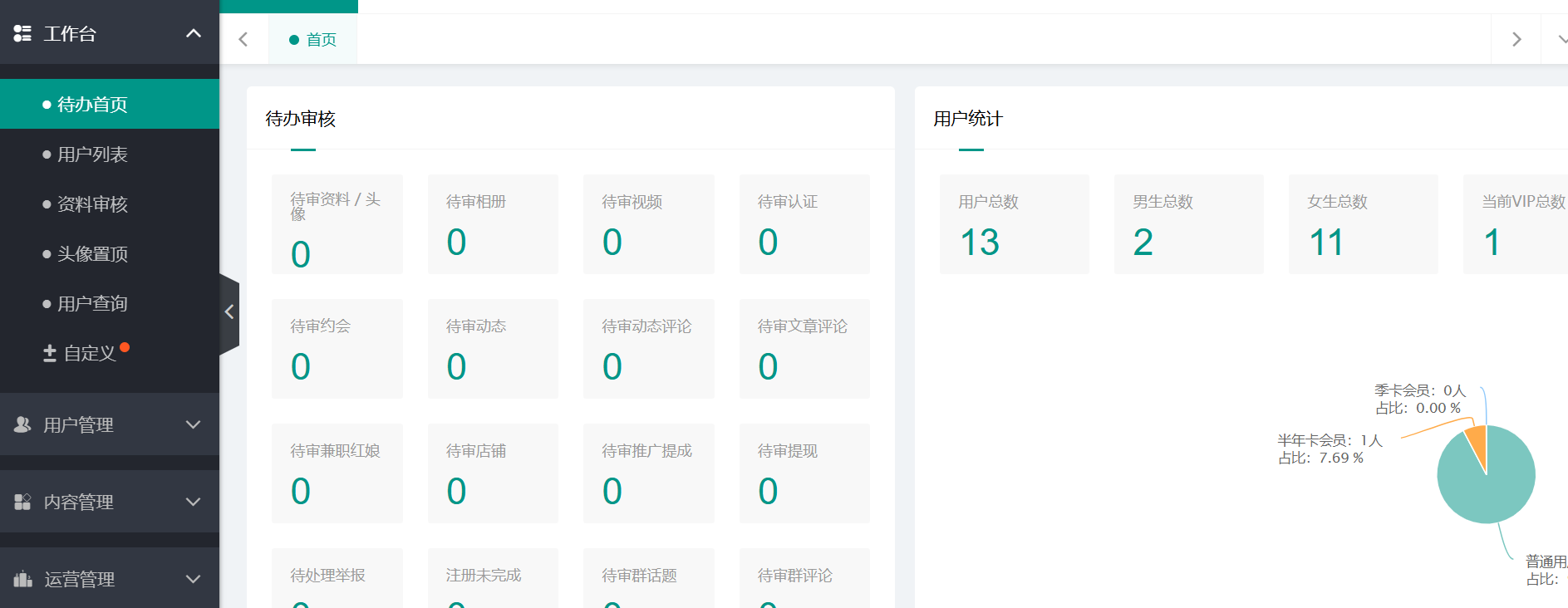 - 用户管理、资料审核